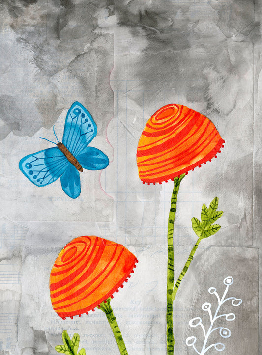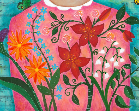 butterflies and flowers girl - print