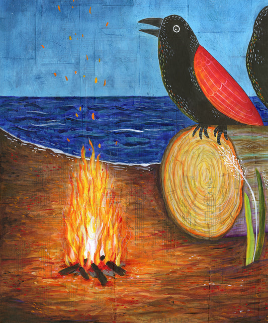 Three Crows starry night campfire - Print